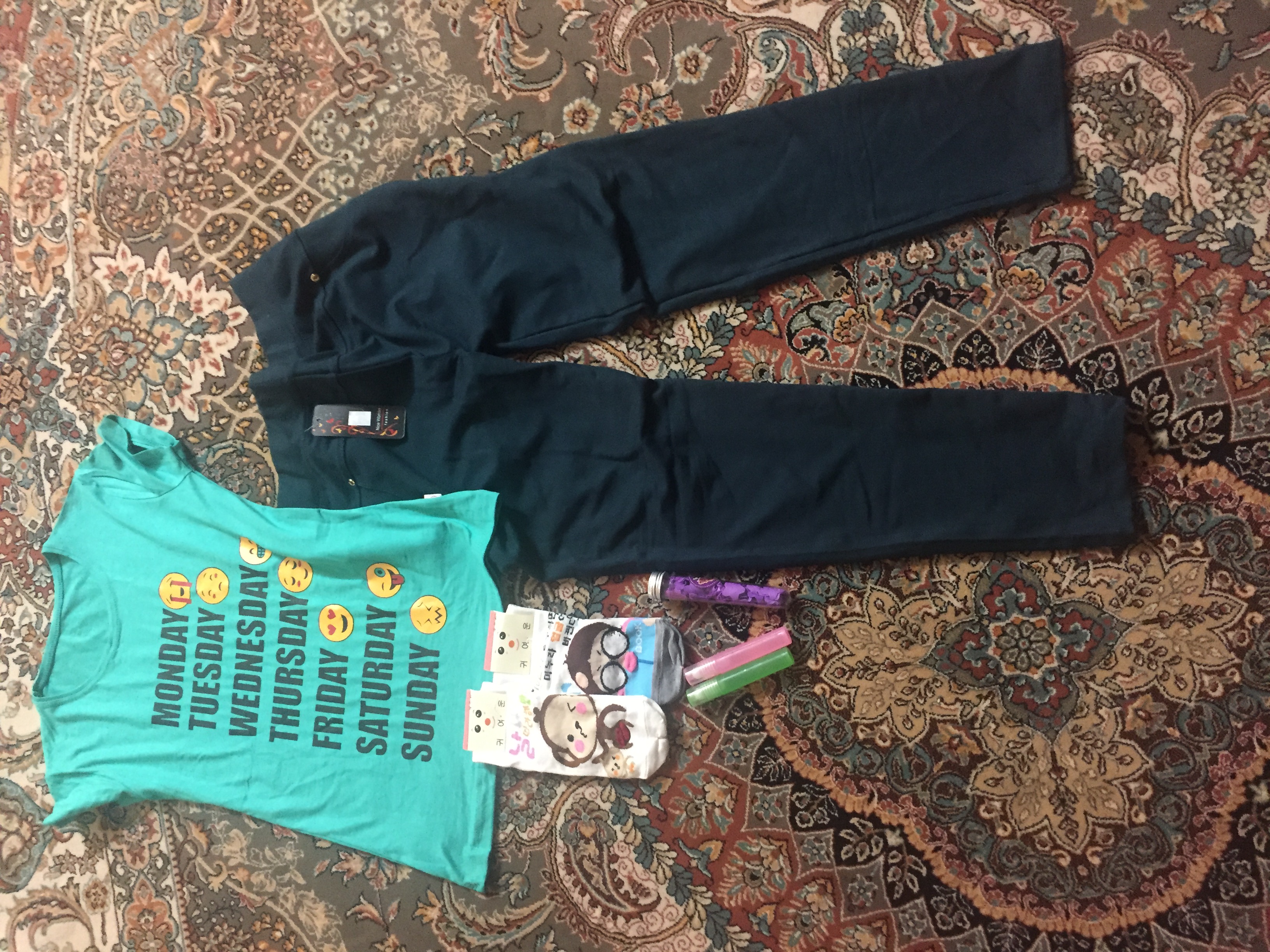 فقط مادرم زحمت کشید یه چند دست لباس راحتی برام خرید و یه سری لوازم دیگه :)